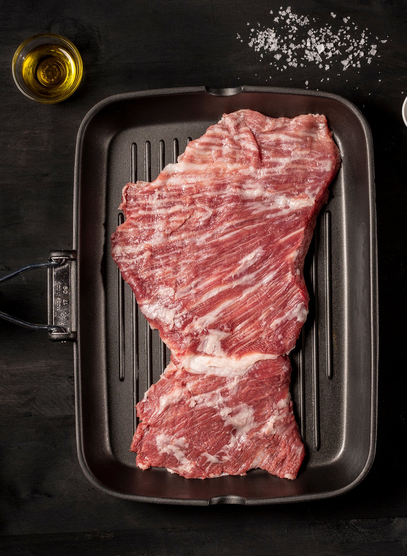 Súper versátil, esta pieza se puede cocinar a la plancha, a la brasa o al horno. Desde casa, lo mejor y más fácil que puedes hacer es cortarla en 4 filetes que darán para 4 raciones para ti, tus hijos o quien te acompañe en la mesa.